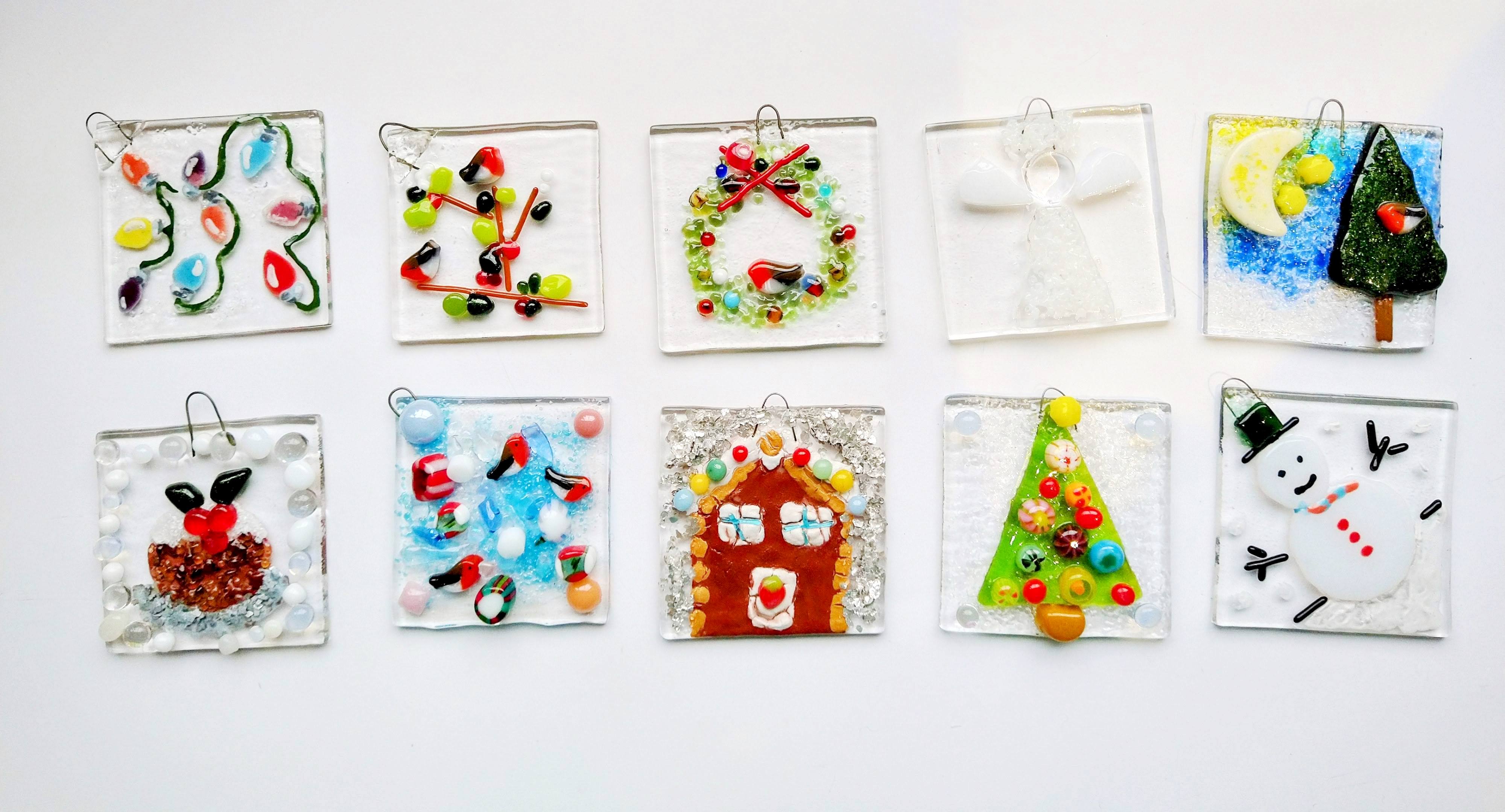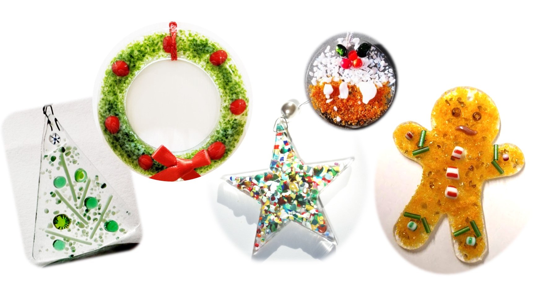 Make some fun and colourful fused glass festive decorations for your window or tree, or gift giving. We will cover an array of glass 'tack' fusing techniques with glass embellishments and enamels.