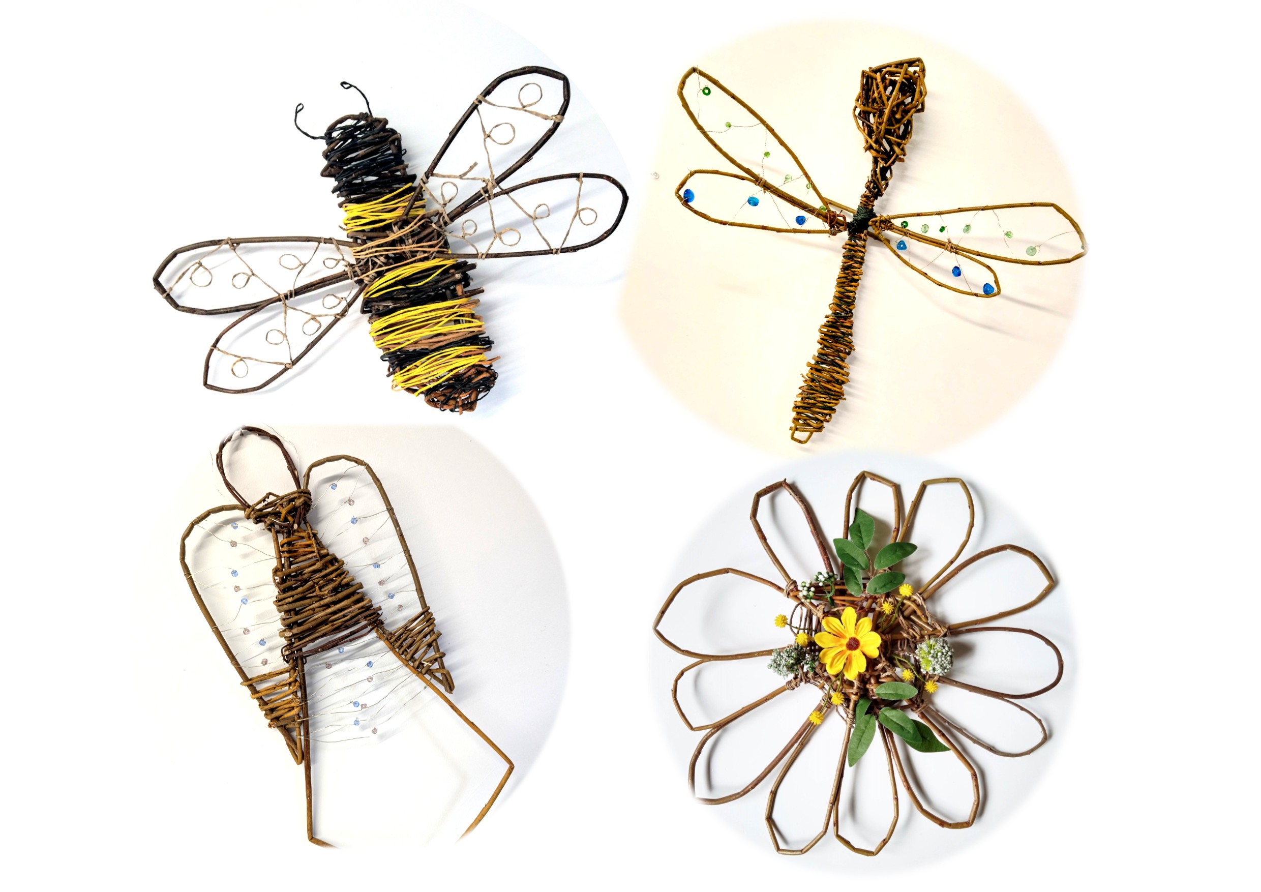 Create Your Glorious Bee, Daisy or Dragonfly! Join us in the enchanting world of willow weaving! In this delightful session, you’ll learn the ancient craft of working with willow, enhanced by captivating design elements like glass beads, foliage, and delicate wire work. Whether you’re a seasoned weaver or a curious beginner, this class welcomes all. This class is more gentle on the hands as you can weave as much or as little as you wish! Suitable or age 14+. £30 as a special offer which includes everything to make a special feature for inside or out.