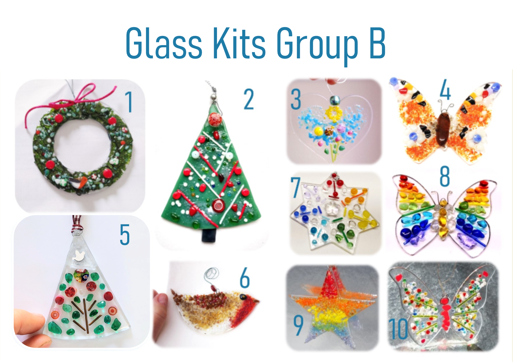 The price includes postage, printed instructions, glue, base, decorations, tools, return label, kiln firing, and cord! There are video links in many kits. All you need is scrap paper. Recommended for ages 8-14+ with adult supervision, depending on design. Please keep away from small children and try to return for firing in 6 months. Colours/styles may vary slightly.