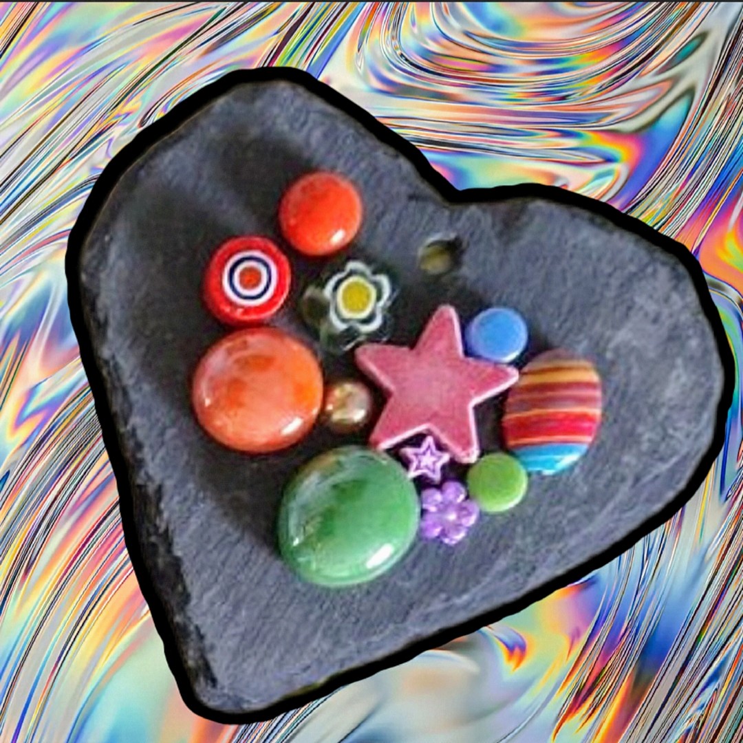 A heart flourished with pastel shades of aqua, mint, lemon, violet, amber and gold. A5 sized