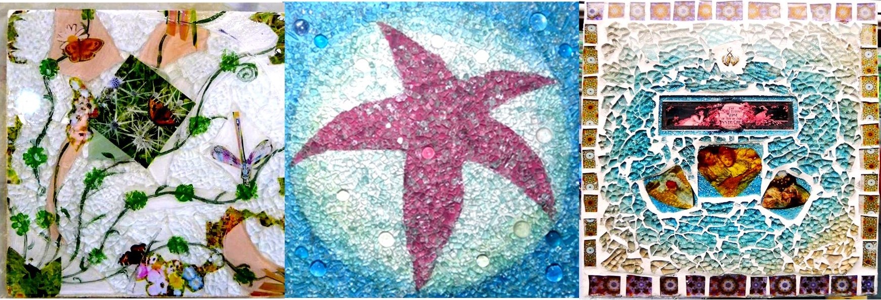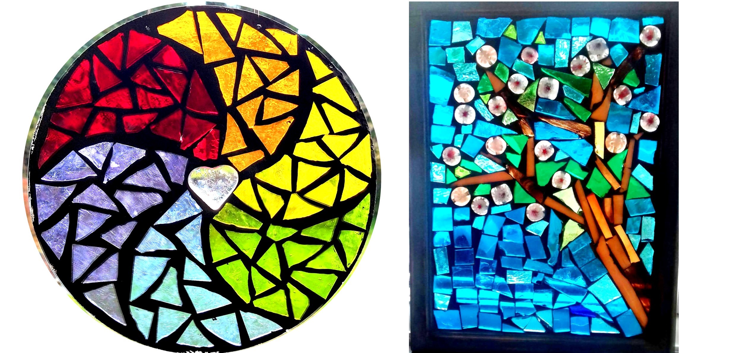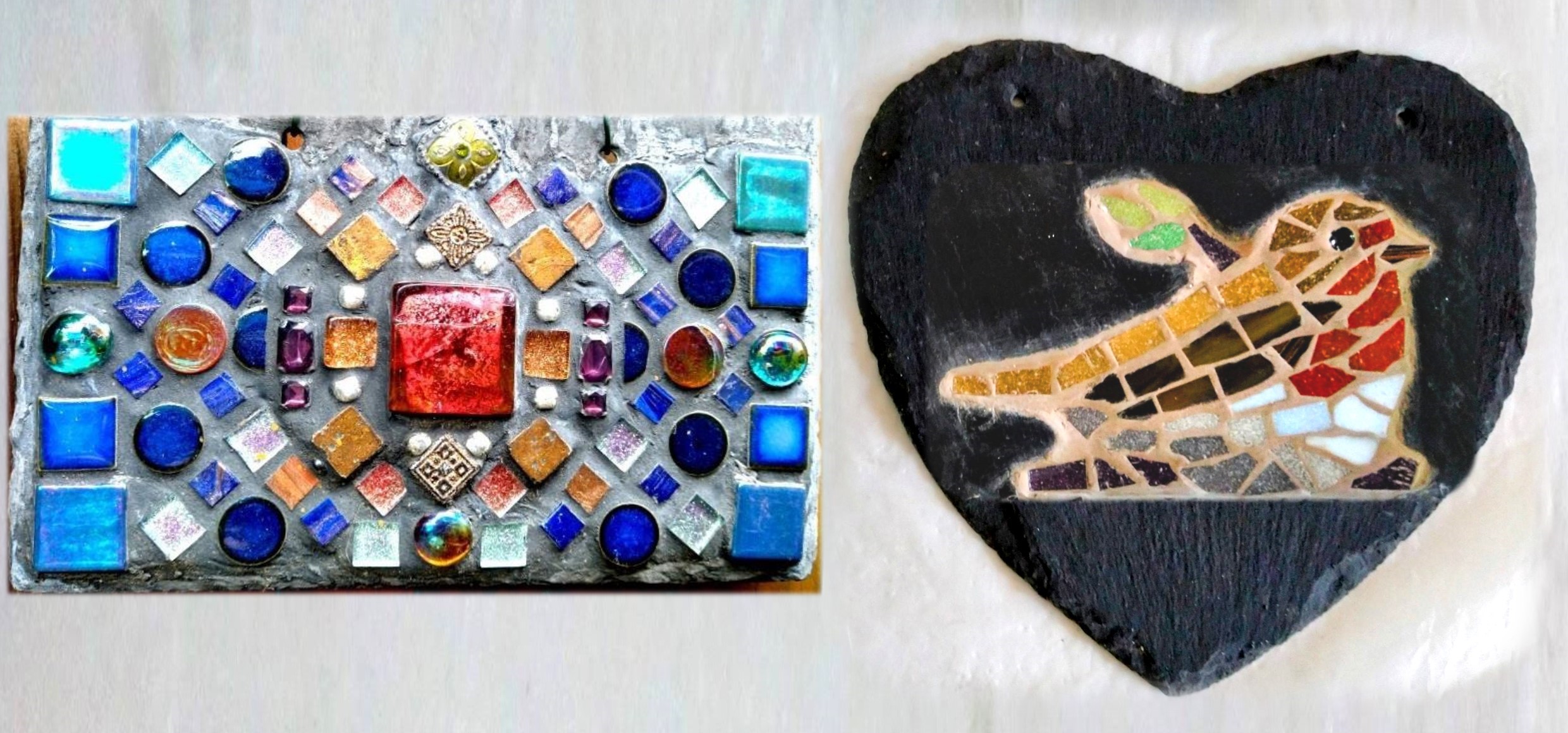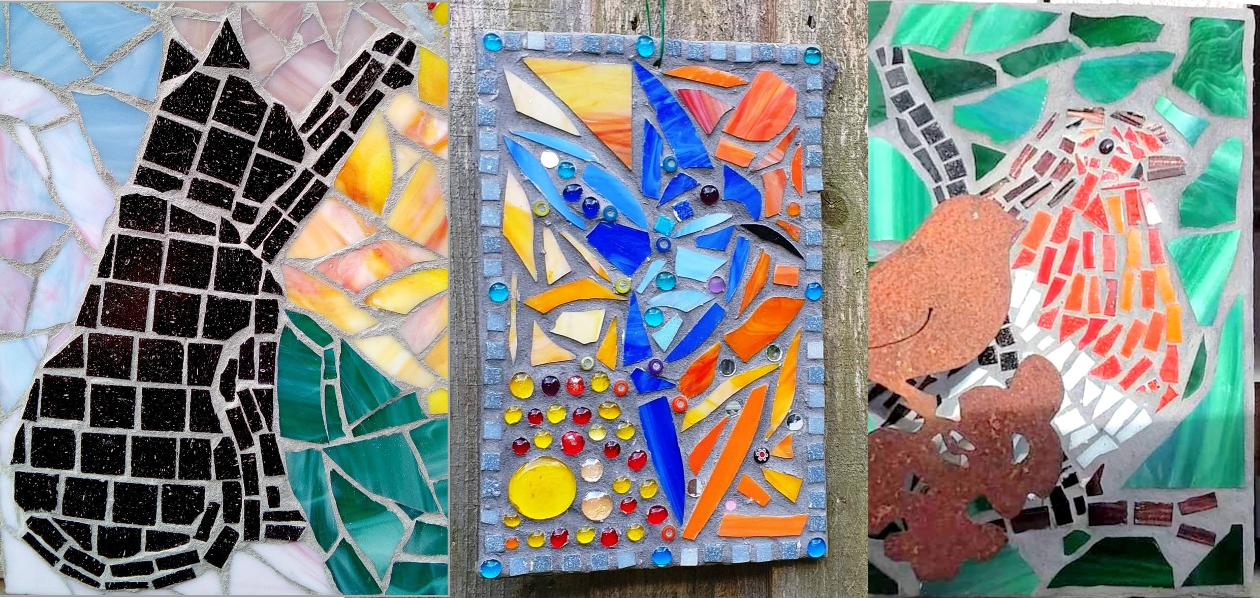 This is a new class for an eye-catching feature in mosaic sculpture! Create a welcome addition to your garden, wall or entrance with shiny elegance. You will gain skills in how to design mosaic patterns, and how to cut and adhere glass tiles, beads and shapes. You will learn flat sculpting techniques by moulding a shape of your own design from a 30x40cm cement base. There will be a half hour lunch and there's a nearby shop. By the end of the workshop you will take away your very own garden gem, and will be given grout to apply at home, once the adhesive has set. The day workshop includes all tools and materials. Your personalised masterpiece can be hung to a wall or fence, or add a garden stake for £1.50. You may wish to bring a bag to take your art home. This class is suitable for all abilities, but some elbow grease is needed for the sculpting. Age 16+ £40